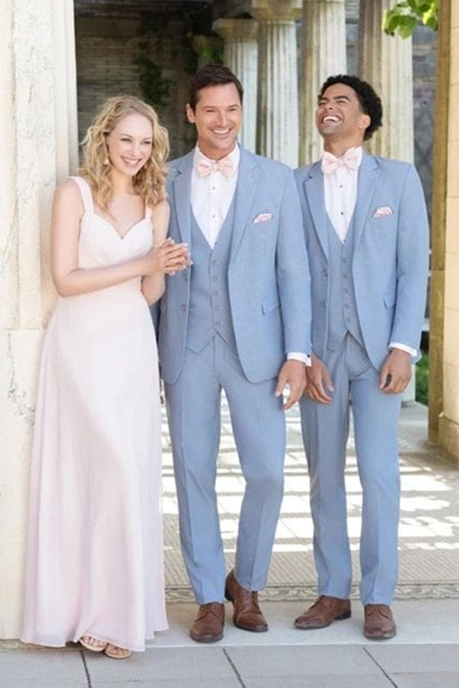 The Larr Brio Cornflower Metro Suit will make you feel as great as you look! The Metro Suit Collection is one of our premiere suit lines boasting 18 colors, all with multiple matching tie options. Made with a 4-Way Stretch fabric.